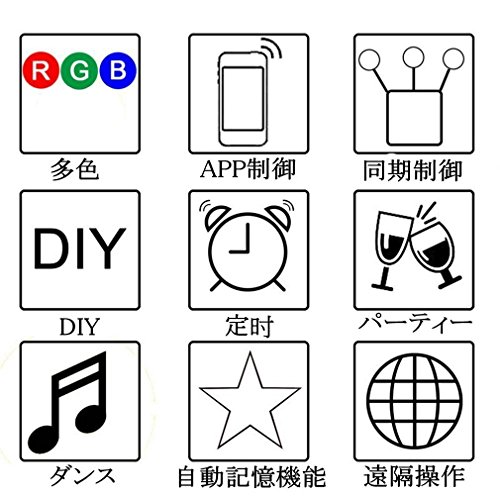 - ★【使い方】APPダウンロード必要!IOS&Android対応。スマートフォンでセンサーに付いている二次元バーコードをスキャンして、APPをダウンロードすると、スマートフォンが自動的にワイヤレスIDと繋がりと設置完成。スマートフォンでLEDテープのカラーやフラッシュモードや明るさなどを調節することができるになります。