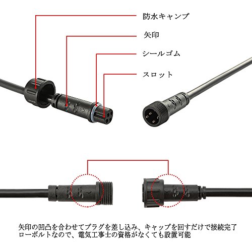 - ★【簡単に取り付け】ローボルトなので電気工事士の資格がなくても設置可能です。ただ屋内用じゃなくて防水、防錆機能を搭載しておりますため、屋外にも適用です。また、また、長さを調整して使用することができる屋外用延長コードを使い、複数延長は可能!