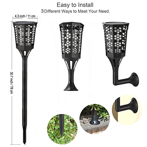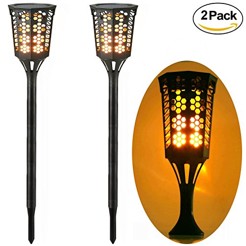 FVTLED ソーラーライト 防犯ライト 玄関ライト 炎のライト ソーラーライト 松明 明暗センサー搭載 外灯 間接照明 揺れる炎 自動点灯消灯 (2pcs, 防犯ライト)