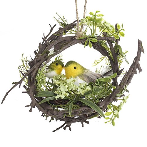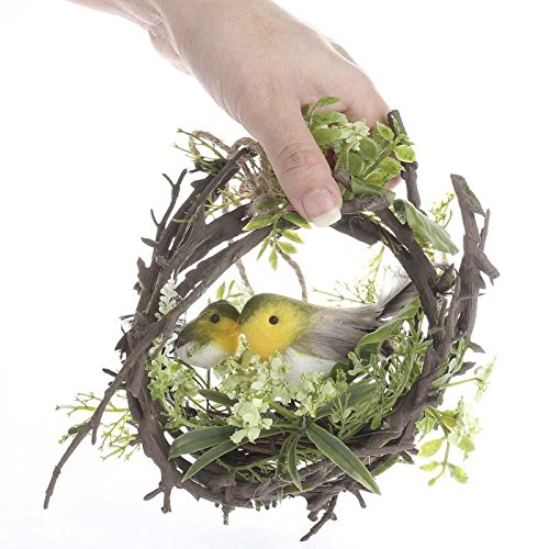 - 天然の小枝リース 森林の緑と鳥の巣 スイートな人工の鳥付き。