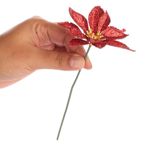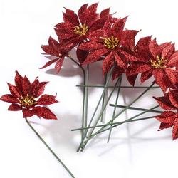 工場直接クラフトパッケージ12のクリスマスレッドグリッター人工ポインセチアStems