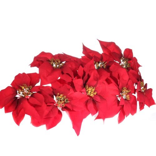 コレクションof 12 Festive Holiday Red Velveteen Large人工Poinsetia花を茎