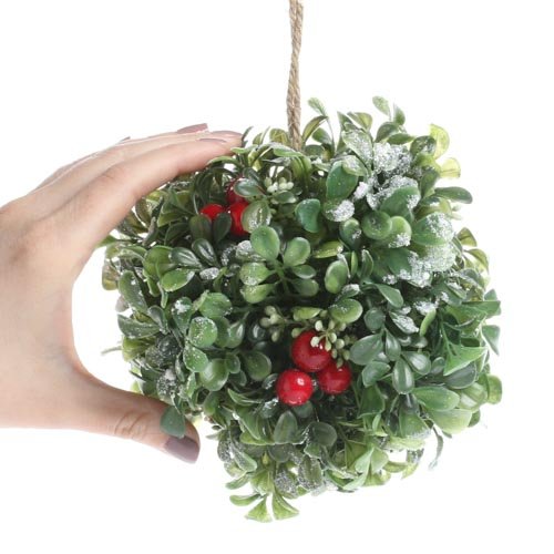 (14cm) - Factory Direct Craft Frosted Artificial Green Boxwood w/Red Berries Kissing Ball (14cm)