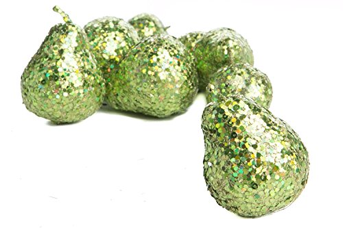 工場直接クラフト® 8 PieceのコレクションGlitzyグリーンGlittered人工Pears For Holidayと季節の装飾