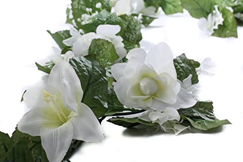 人工ホワイトローズ、Stephanotis、赤ちゃんの息、Madonna Lily Bloom花柄のホームデコレーションと設計のガーランド