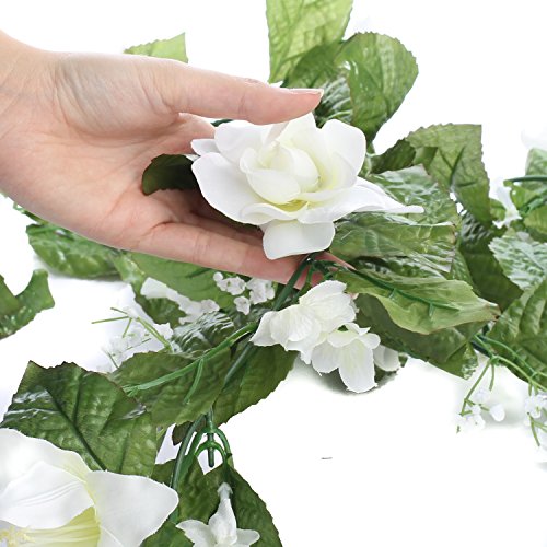 - 2セット人工設計、ホワイトローズ、Stephanotis、カスミソウ、マドンナリリー花花ガーランドでご家庭の装飾