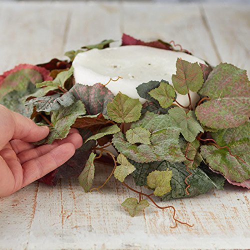 - 工場直送のクラフト、工芸、装飾を表示する® 2植毛ミックスグリーン人工グレープリーフキャンドルリングにバーガンディのアクセントのセット