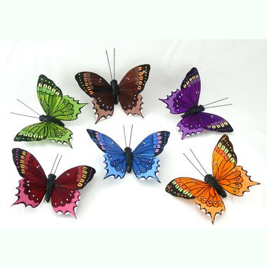 パッケージ12のリアルなLook AssortedカラーFeathered人工蝶の花柄Embellishing、工芸、Desiging B66