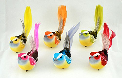 グループ12の明るいAssortedカラー人工フェザーTailedマッシュルームBirds Forクラフト用、作成と表示