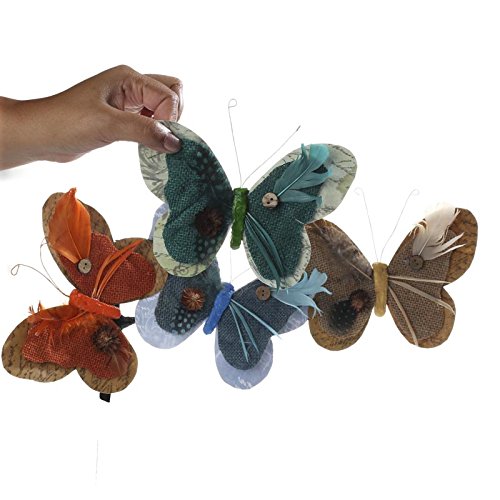 4 Assortedカラーナチュラル黄麻布とフェザー蝶with Attachedクリップ