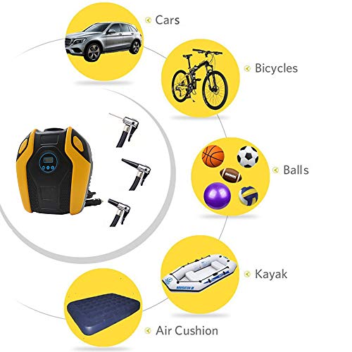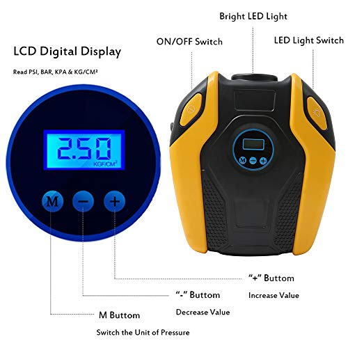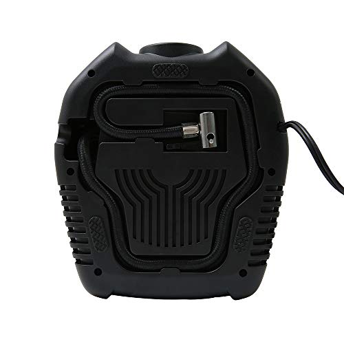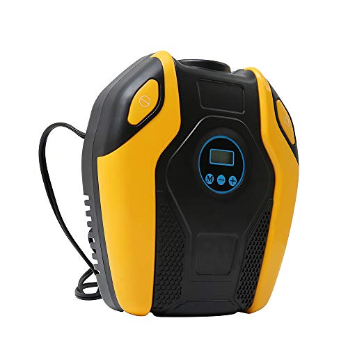 " 電動エアコンプレッサー 電動ポンプ 車用空気入れ DC12V車対応 最大圧力150PSI LCDデジタル表示 LEDライト付き 自動車 自転車 バイク ボール適用 あなたは、以下の悩みがありますか? 時間が経つにつれて、車のタイヤの空気圧が低下すること; タイヤの空気圧は温度によって変化すること; 低圧による燃料消費の増加をもたらすこと; 電動エアコンプレッサーは、上記の問題を解決できる! 商品紹介 ◆ LCDデジタル空気圧メーター:いつでもタイヤの空気圧をチェックすることができる。 ◆ オート・ストップ:希望な空気圧を予め設定することで空気注入をする;設定した空気圧に達すると、エアポンプの充填を自動的にストップできる。 ◆ LEDライト夜間照明:高輝度LEDライトは夜間に便利で、十分な照明を提供でき、安全に空気入れが可能。 ◆ 強力なパワー&多用途:最大空気圧は150PSI;自転車、バイク、中&軽自動車(SUV含み)、ボール、小型インフレータブル玩具などに対応可能。 ◆ 4種類の単位・自由変更:LCD表示画面には4種の圧力値単位(PSI、BAR、KG/CM²)を表示可能。 仕様: 動作電圧:DC 12V 動作電流:10A 最高空気量:25LPM(185/70R14規格のタイヤを満充填するのは4-6分かかる) 最高空気圧:150PSI 圧力計精度:±0.5PSI 動作温度:-20℃~+60℃ 製品寸法:20cm*18cm*7.5cm 本体重量:1070g 電源コードの長さ:3M エアホースの長さ:53cm 品質保証サービス:24カ月安心保証 ご注意(免責)>必ずお読みください ① 24Vの自動車には対応できない。 ② 空気を入れる時に、相当の作動音がありますので、ご注意ください。 ③ トラック、バン、バス、エアベッド、エアーマットレス、インフレータブル・ボート(ディンギー)などには対応できない。 ④ 長時間使用される時に、エアホースが熱くなるので、ホースが冷めるまで、引き抜かないようにしてください。"