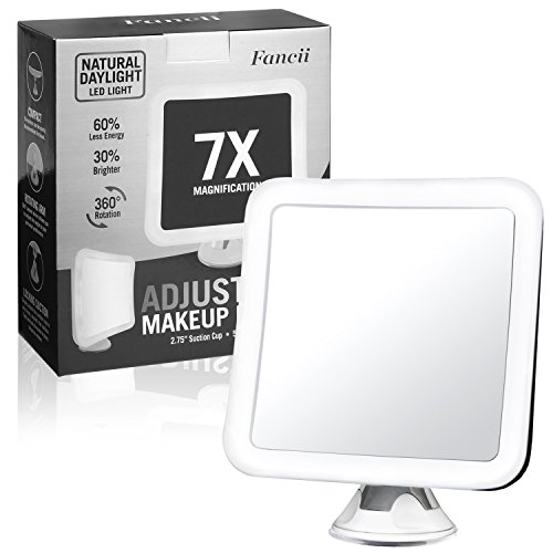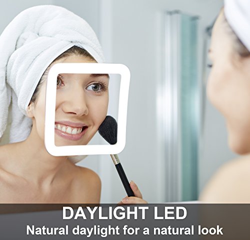 Fancii 7X拡大LED照明付き化粧鏡 - ナチュラルデイライトトラベルバニティミラー - コードレスサクションマウント、5.2 "ワイド、ポータブルイルミネーションバスルームミラー(スクエア)