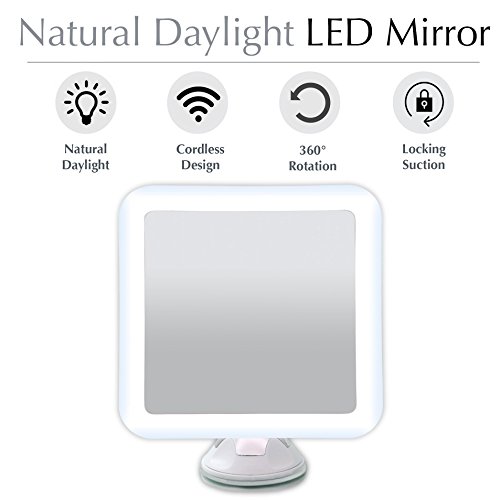 - Cordless battery lighted mirror firmly attaches to any smooth wall surface, such as ceramic, marble, acrylic, and other mirrors