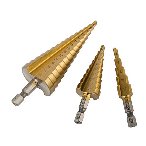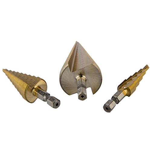 ステップドリルチタンコーティング3本セット 3本セットのステップドリルで各種サイズの穴あけに便利