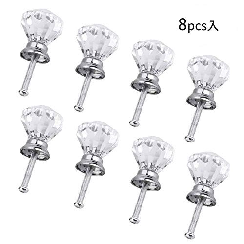 引き出しノブ 取っ手 ハンドル ツマミ クリア クリスタルガラス ダイヤモンド形 取っ手 食器棚 キャビネット 引き出し 戸棚 ねじ付き お洒落 インテリア 8個セット