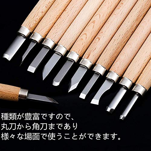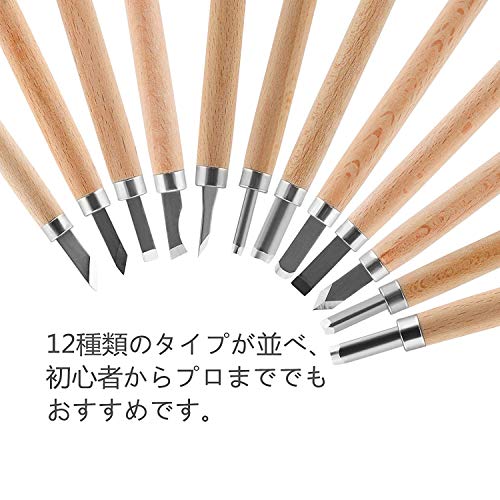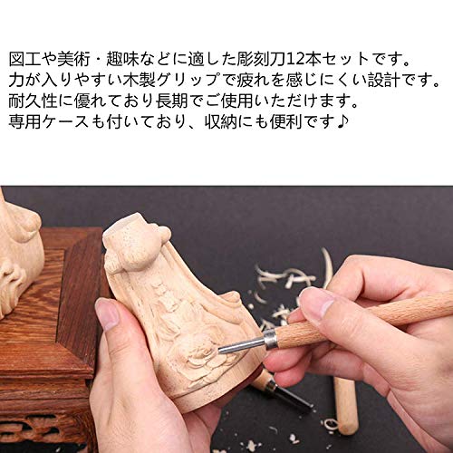 彫刻刀 木工 木彫り 手彫り 版画 カボチャ彫刻 伝統工芸 篆刻 DIY工具 個人趣味 初心者 プロ 子供 木製柄 収納ケース付き 12本セット