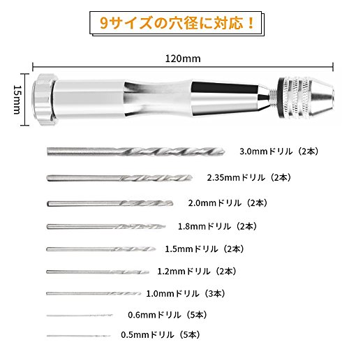 - 【仕様】素材:超硬合金、高速度鋼 ピンバイス長さ:約120mm 適用範囲:0.3-3.6mm 26本セット内容:1×ピンバイス、5×0.5mmドリル、5×0.6mmドリル、3×1.0mmドリル、2×1.2mmドリル、2×1.5mmドリル、2×1.8mmドリル、2×2.0mmドリル、2×2.35mmドリル、2×3.0mmドリル