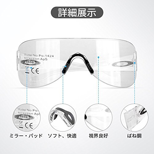 - 【人性化デザイン】保護メガネは軽量で、長時間掛けても疲れません。ソフトなノーズパッド、つるに滑り止めバッド付き。ヒンジにばね鋼を使用され、耐久性が高い。それに、全透明な設計で、クリアレンズで視界良好です。