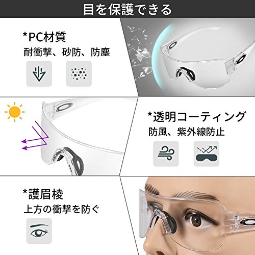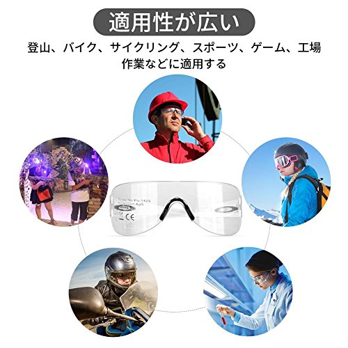 - 【高品質材料】保護メガネは高品質なPC材料を作られています。全透明設計で、クリアレンズで視界良好です。耐久性が高い、作業の時に目を保護することができます。防風、防塵などの性能があります。