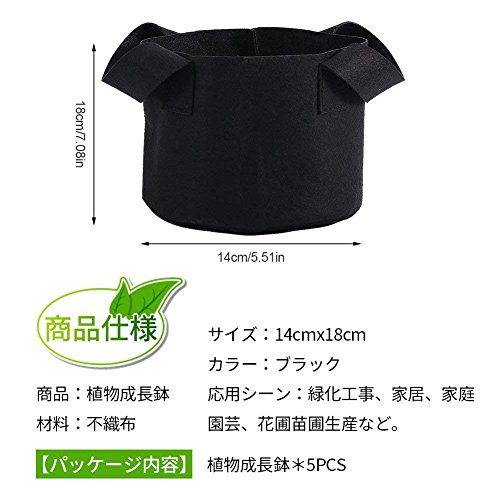 不織布プランター 植物成長鉢 植え袋 ガーデンニング用 庭用 園芸用 植物栽培 野菜栽培 通気性 浸透性 運搬便利 腐食しない 分解可能 環境に優しい 5セット 14 x 18cm