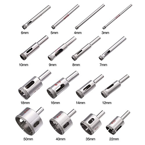 Fbest ガラス タイル用 ドリルビット コア ドリル ダイヤモンド コアビット 混合 ガラス 研削 加工 穴あけ 硝子 大理石 レンガ タイル カッター 16本 セット