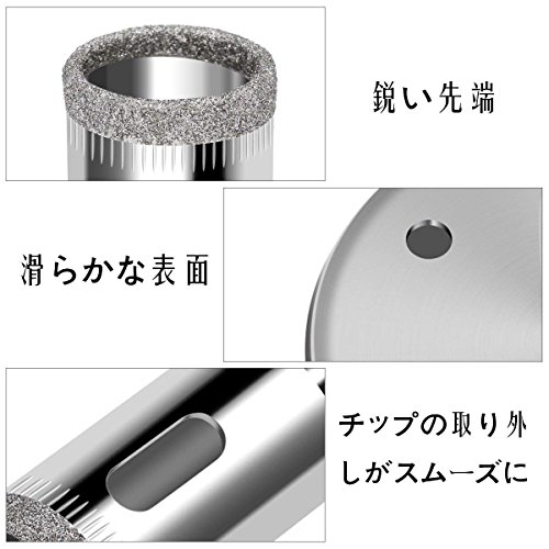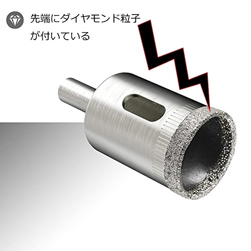 - 先端にダイヤモンド粒子を電着させていますので、ガラス以外にも、 タイルやレンガ、陶器といった硬度の高い部材への穴あけが可能です。