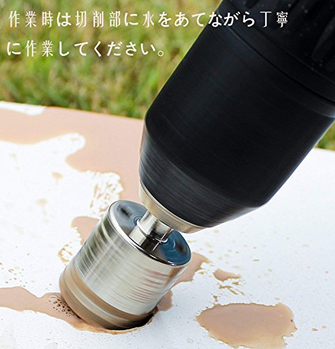 - 作業時は切削部に水をあてながら丁寧に作業してください。ガラスドリルビットをご使用の時、高速の回転で高熱を発生しますのでビットを壊さないように水をかけながらご使用ください