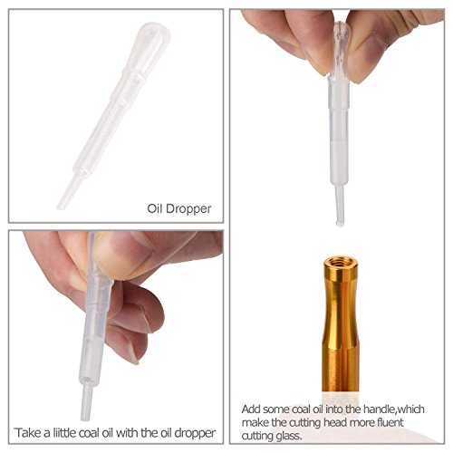 - 自動給油:ガラスナイフに少量の灯油を滴下して、オイルが自動的に流れて、カッターヘッドの使用はシャープでスムーズになります。オイルはミシン油や灯油等サラサラした油をお使いください。