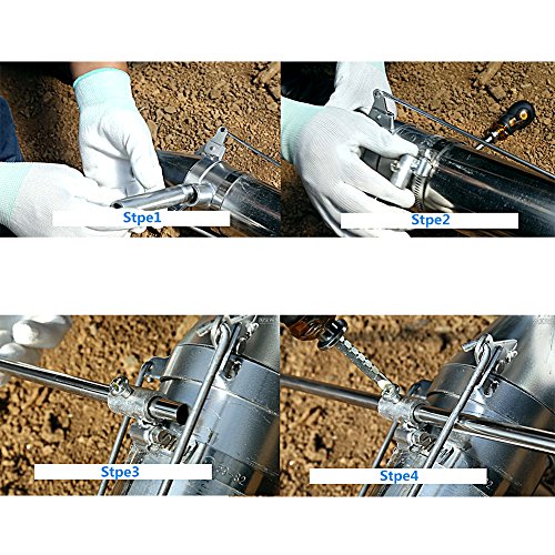 (Step1). Put the funnel one the top of the planter. (Step2). Adjust the scale pole to meet the distance needs of different plants. (Step3). Inset the planter into the soil. (Step4). Put the bulbs or seeding inside the tube. (Step5). Twitch, then lift the planter up slightly about 1-2cm, final pressure and release the seedings