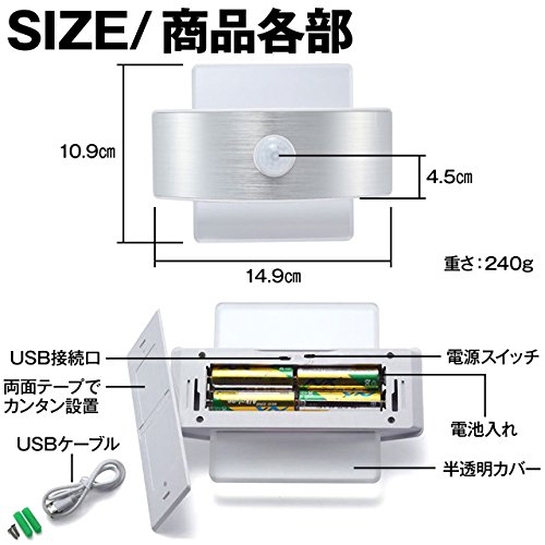 - 【仕様】 LEDセンサーライトです。 色が変えられます。 人感センサー機能付き。 両面テープで取付。 取り付け方法:3mステッカー。