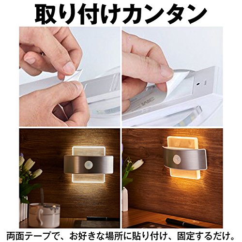 Felimoa 人感センサー ライト 電池式 LEDナイトライト 両面テープ付 夜間のトイレ 玄関 外灯 駐車場に最適