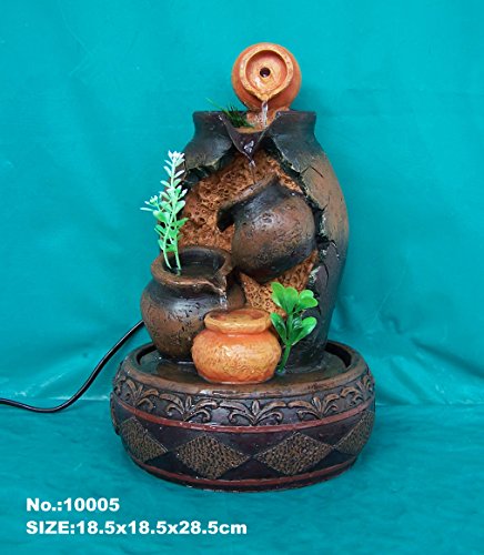 This beautiful water fountain has the pot shape style that water comes from the top pot to the bottom. The indoor water fountain is made of resin. The dimension of it is approx. 7 1/2" x 7 1/2" x 11 1/2". See more Water Fountains
