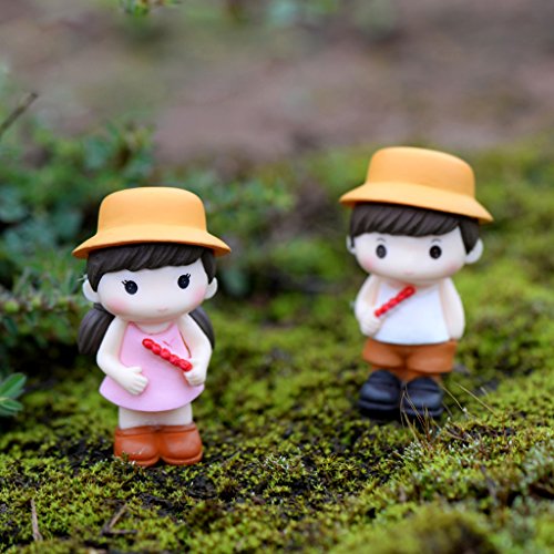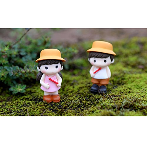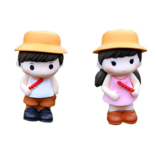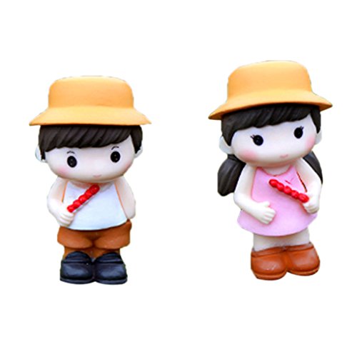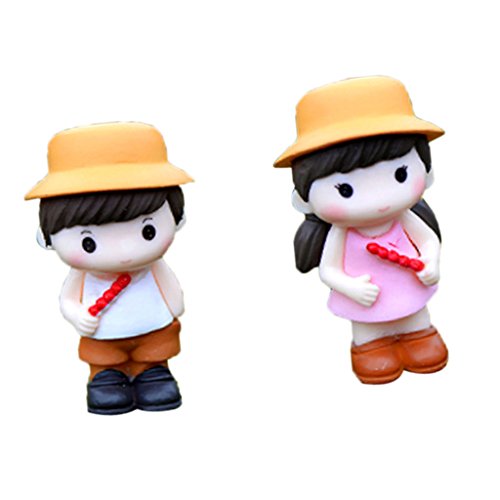 Fenteer マイクロ景観置物 2個 ミニチュア カップル 全2色 可愛い ガーデン装飾品 DIY - イエロー