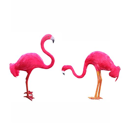 Fenteer 3色 人工毛皮 フラミンゴ置物 2個 ガーデン 芝生 庭の装飾 - ローズレッド