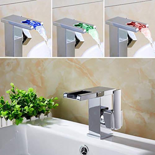 Fenteer カラフル 3色 LED 蛇口 洗面器 キッチン 浴室 水タップ 水の量 調整可能