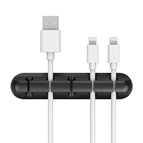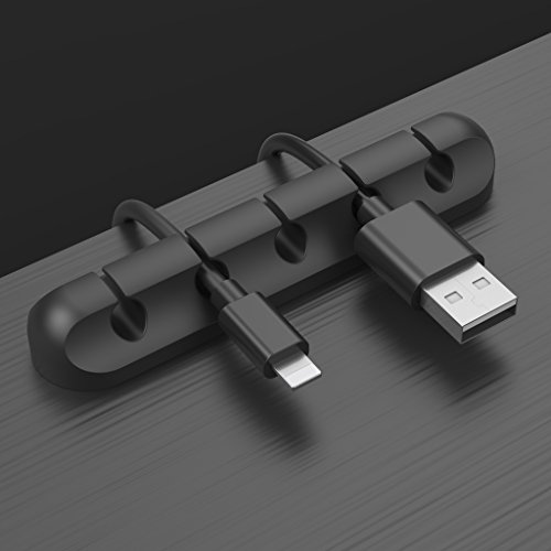 Fenteer 柔軟性 ユニバーサル デスクトップ ケーブル クランプワイヤーホルダー 仕上げ 接着剤 5穴 全3色 - ブラック