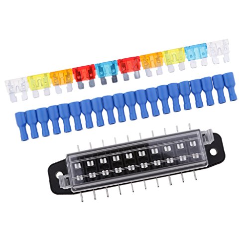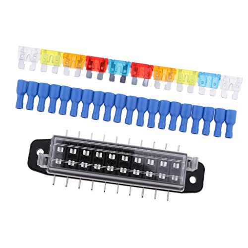 Fenteer ブラック 全4サイズ DC12-24V 車用 ヒューズ ヒューズボックス ホルダー スペード ターミナルキット - 10ウェイ