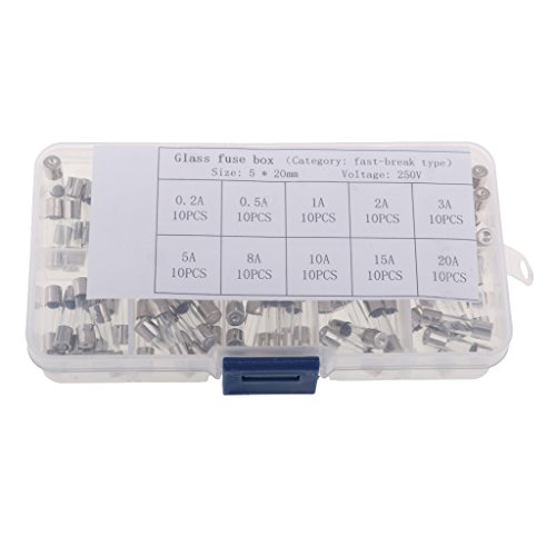 Fenteer 100点セット ヒューズ ガラス管 0.2-20A 速断 5x20mm 専門ケース付き