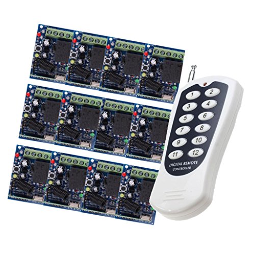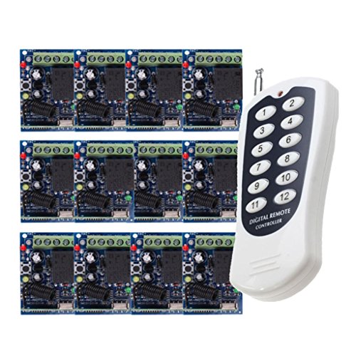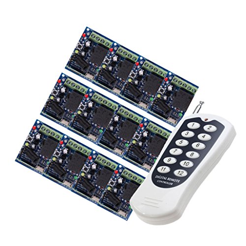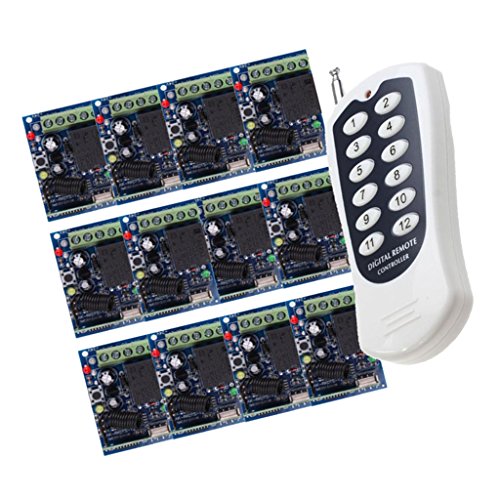 Fenteer ワイヤレス RFリモコン トランスミッタ+12個 レシーバ 遠隔操作 1CH DC12V 433mhz 低消費電力 ケース付き
