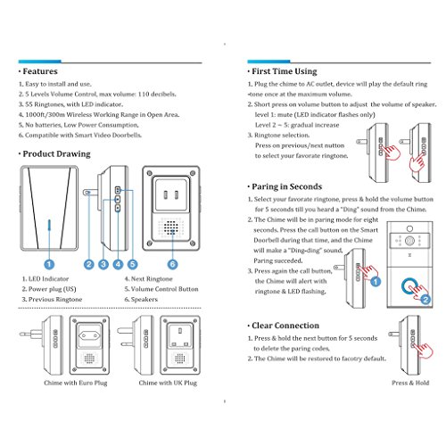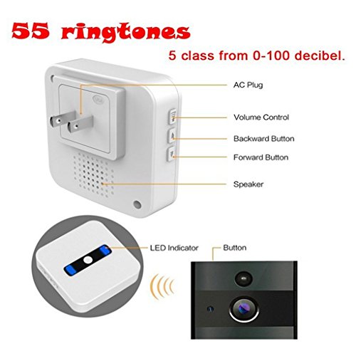- 55のメロディーと5つのレベルの調節可能なボイスボリュームを備えています。最小のボリュームはミュートモードです。マックス。ボウルムは最大110dBです。