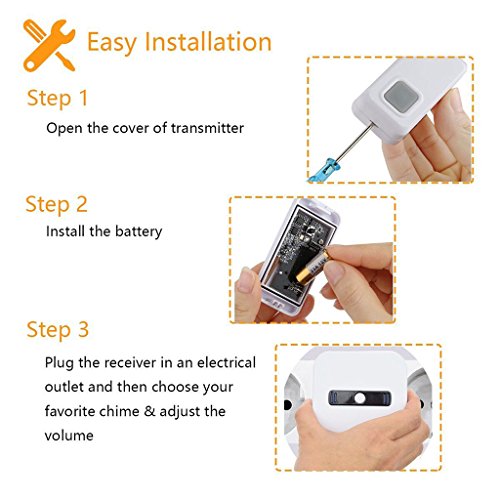 - レシーバー(室内機)は米国の標準プラグです。プッシュボタントランスミッタ(ウォータープルーフ)は、1個の12Vバッテリーで作動します。 (バッテリーは含まれていません)。