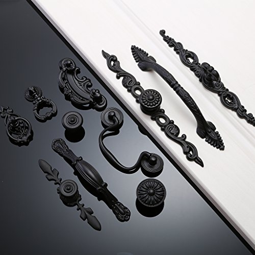Fenteer 15タイプ選べる 耐久性 プルハンドル キッチン キャビネット 戸棚ドアノブ インストール簡単 - ブラック#970-128
