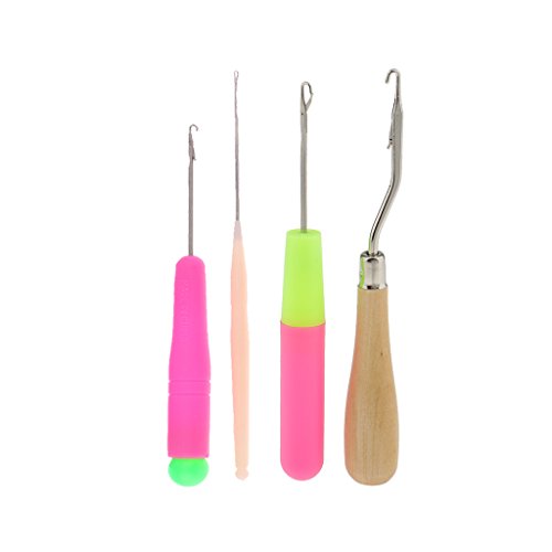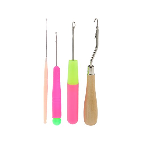 Fenteer ヘア/マイクロ 編組 ドレッド ロック ラッチ フック かぎ針 編み針 帽子、靴 DIY 編みツール 4本セット