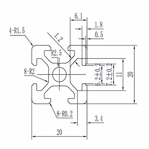 - 押出成形は調節可能で、4つの溝付き面のすべてにTスロットナットを保持できるので、大きなフレーミング材です。