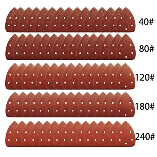 Fenteer 約50枚 全7種 40~240グリット 研磨用ペーパー サンディング 5穴 三角 - 80グリット