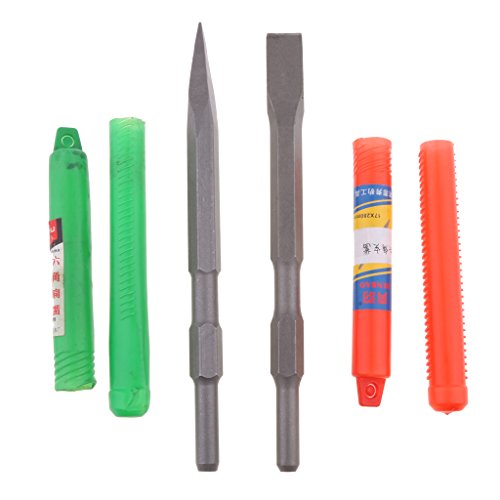 Fenteer 高品質 ポイントチゼル&フラットチゼル 六角シャンク 17mm 専門ケース付き 多用途 電動ハンマー 高強度鋼