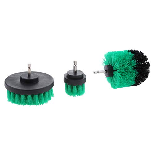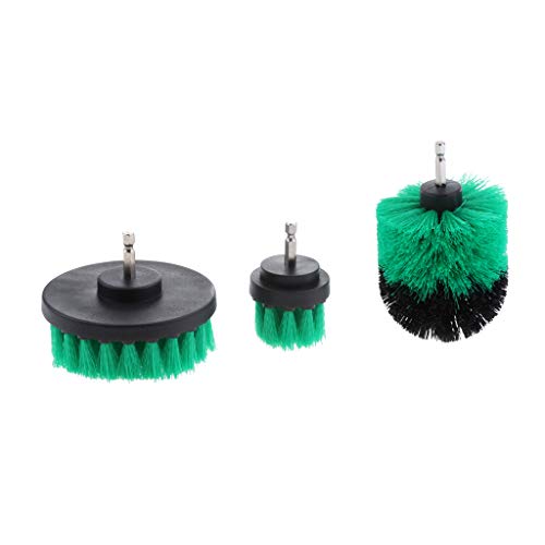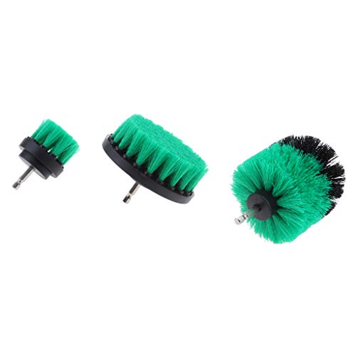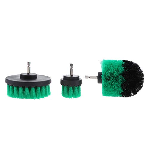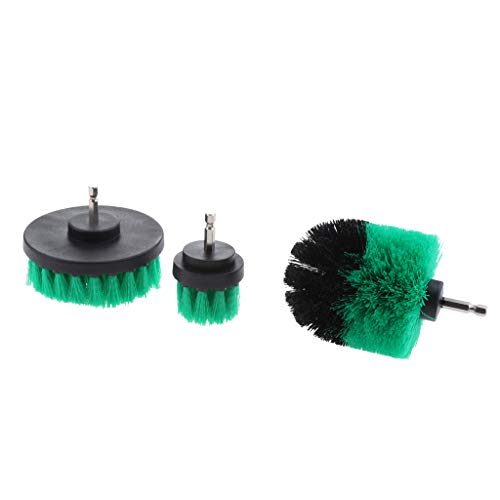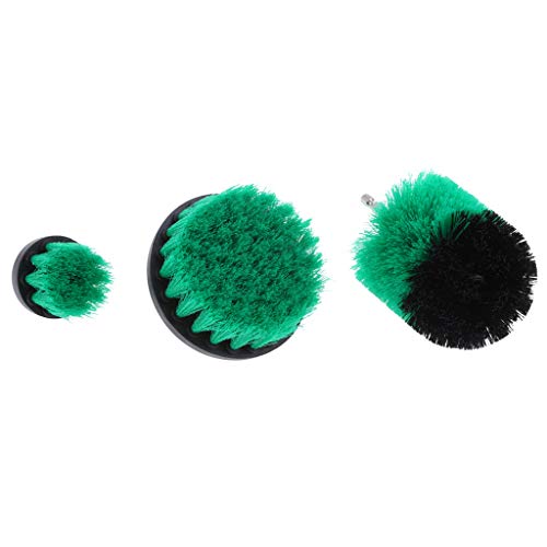 Fenteer 3点セット ドリルブラシ 浴漕 タイル グラウト 清掃ブラシ スクラブブラシ 1/4インチ - 緑