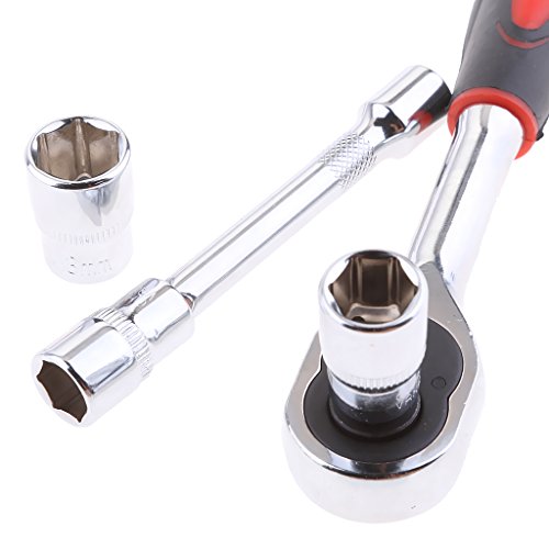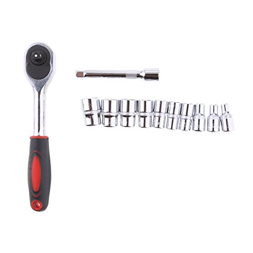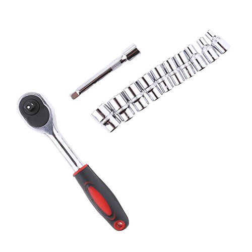Fenteer 車用 汎用 修理工具 1/4インチソケット ラチェットレンチ スリーブ ソケットドライバー レンチセット