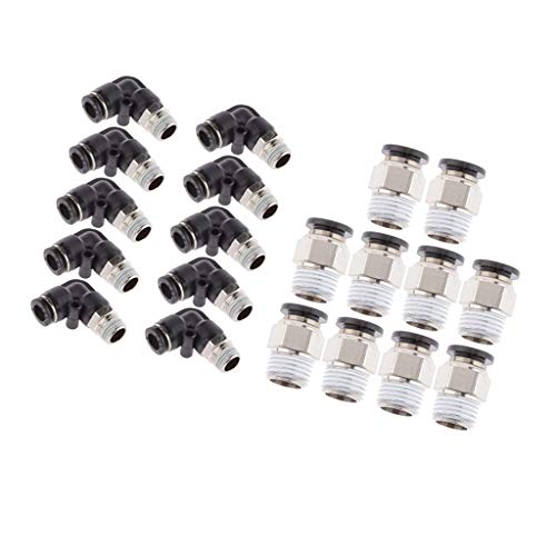 Fenteer 空気圧コネクタ 20個入 チューブ継手 外径8mm〜1/4 インチ BSP エルボー+ストレート