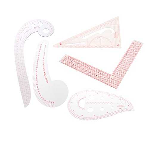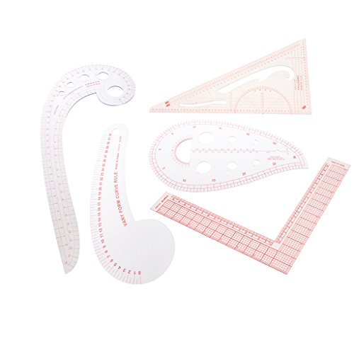 Fenteer クラフト カンマ フレンチ 曲線 ものさし 定規 L-方形 トライアングル ルーラー セット 5個入り